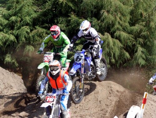 Look lap and a young Mitch Rees (now 19 and rides MX1!) leads #909 Nick Saunders and #6 Josh Coppins over the first jump. Peter Broxholme (aka Broxy) was in trouble for getting ahead of the lead rider.