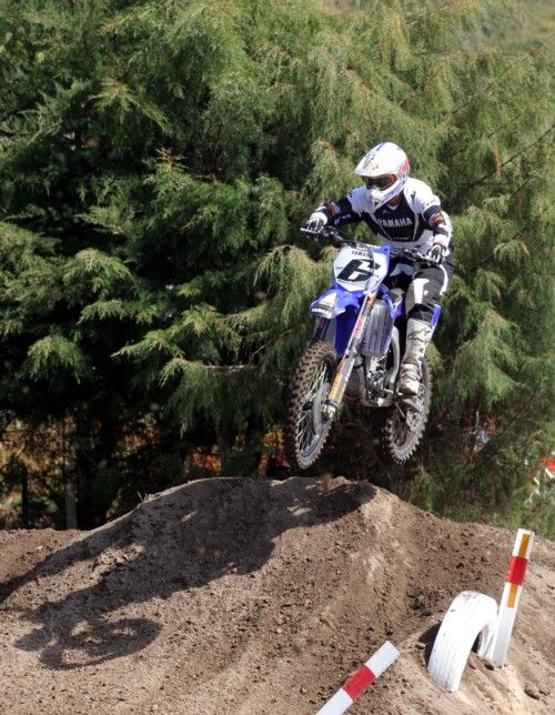 Josh hit the low berm at pace and launched into the face of the jump. The bike went near vertical, was very high as Josh pushed the front down. It was a huge jump and he cased it with the rear wheel 300mm short. Fortunately the factory suspension on the YZ450 soaked it all up. There was plenty of revving going on also. I was the only photographer there and and I only got one shot - albeit slightly out of focus. It was a BIG jump and by the end of the day that first jump had been worn down to near nothing. We never saw it again.